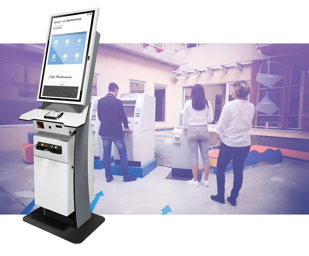 Pyramid Computer bietet Banken und deren Software-Spezialisten POLYTOUCH® Kioskterminals als Plattform für Selbstbedienungs-Digitalisierungsprojekte an.