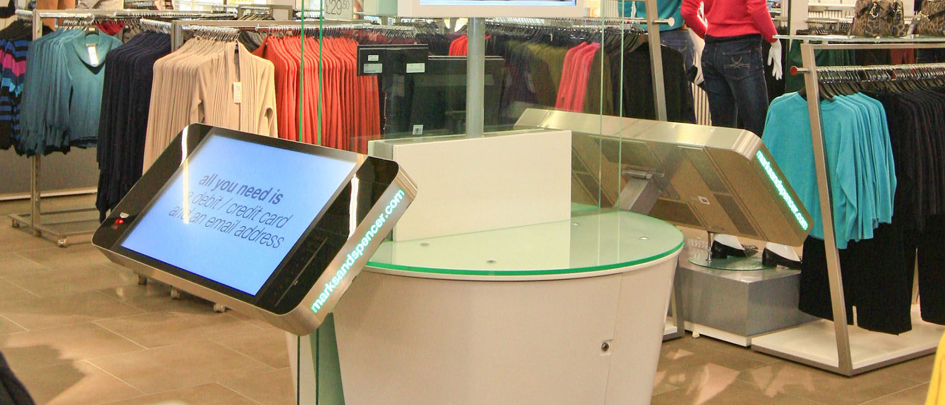 Das Unternehmen wusste, dass es seine ehrgeizigen Ziele nur mit den richtigen Technologiepartnern erreichen konnte. M&S wandte sich an den Multi-Touch-Kiosk-Hersteller Pyramid Computer und an Wincor Nixdorf, den Anbieter von Handels- und Bankenlösungen.